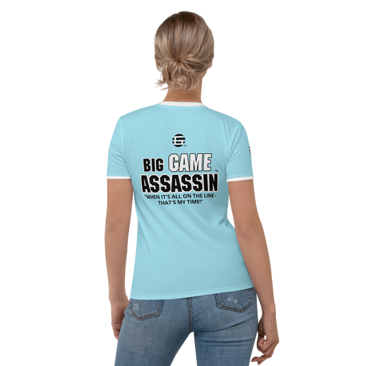 BIG GAME ASSASSIN ® (B.G.A.) Women's T-shirt. Blizzard blue.